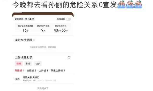 43岁孙俪主演的新剧《危险关系》上线后,播出表现引发了不少讨论。剧集聚焦情感操控这类话题,讲述一位女性在追查真相过程中逐渐陷入困境的过程。开播初期,卫视端数据显示东方卫视收视率一度达到一定水平,在同时段保持了不错的位置。不过网络平台热度相对平稳,没有出现特别突出的数据。